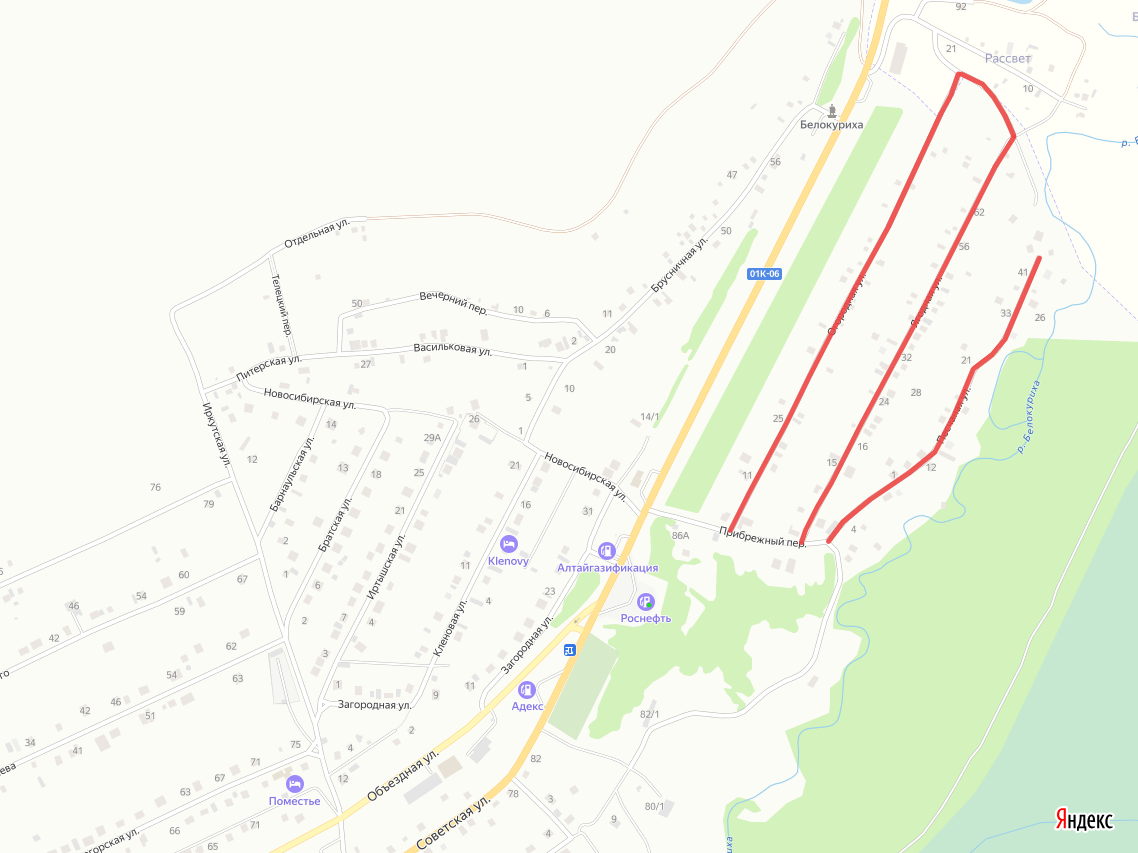 По улицам: ул. Огородная, ул. Ягодная, и ул. Песчаная
